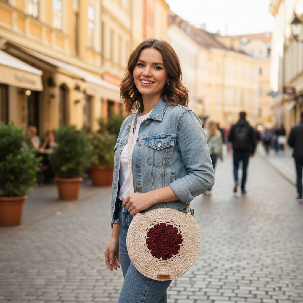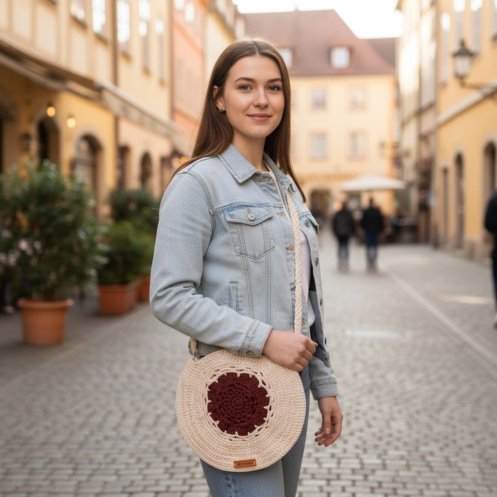 ✨ Bolso bandolera de ganchillo – Hecho a mano con cordón rumano