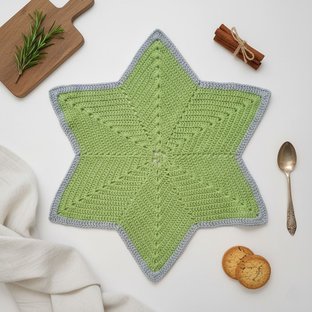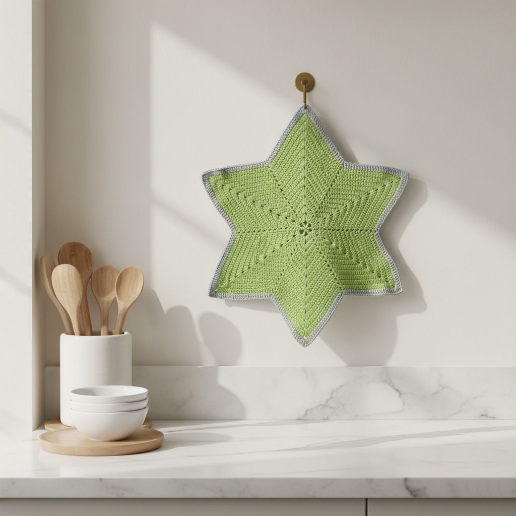 ✨ Toalla de cocina estrella a ganchillo – Hecha a mano