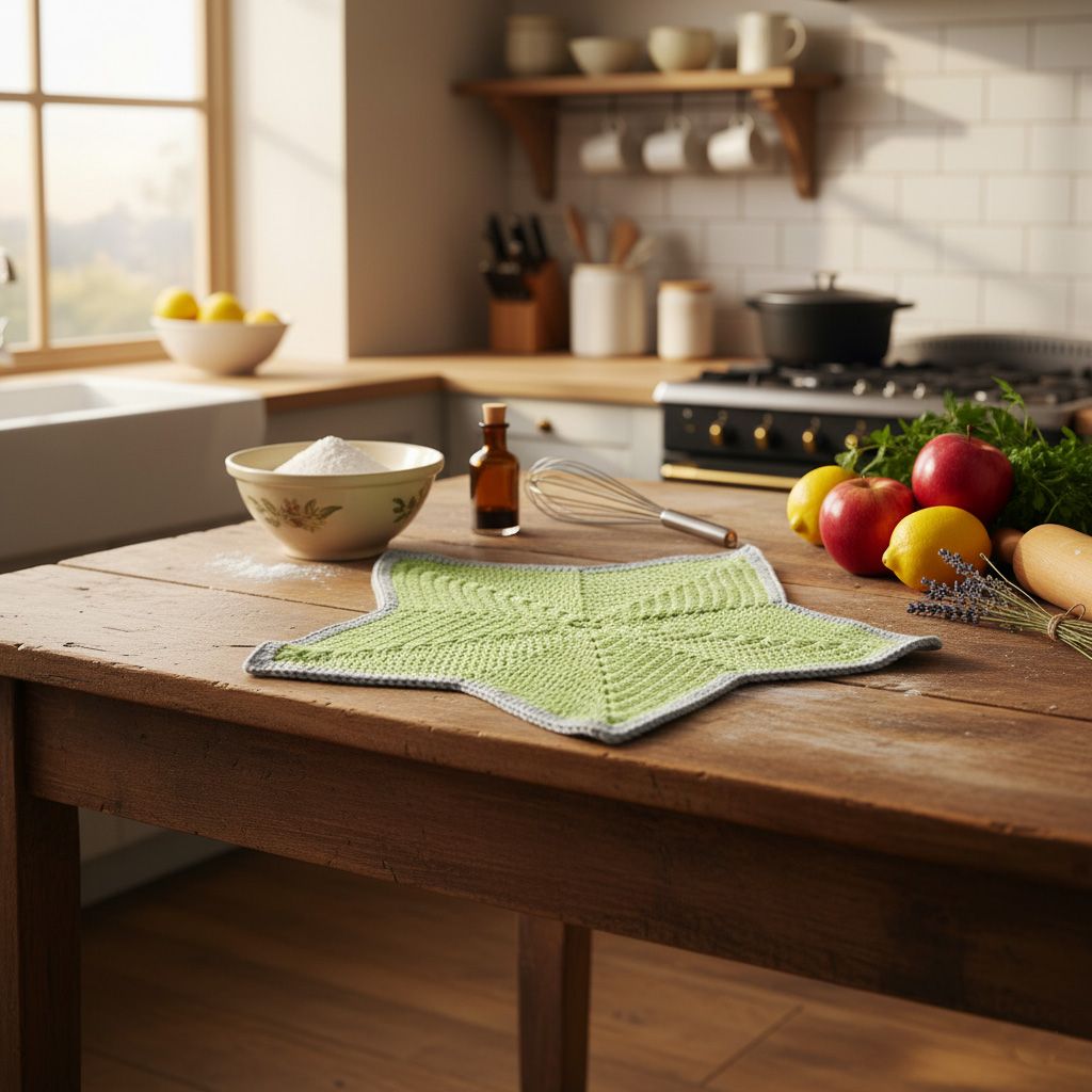 Transforma tu cocina con esta encantadora toalla en forma de estrella tejida a mano, perfecta para añadir ese toque artesanal único mientras protege tus manos y seca tu vajilla con la suavidad y absorción que solo el algodón de calidad puede ofrecer.